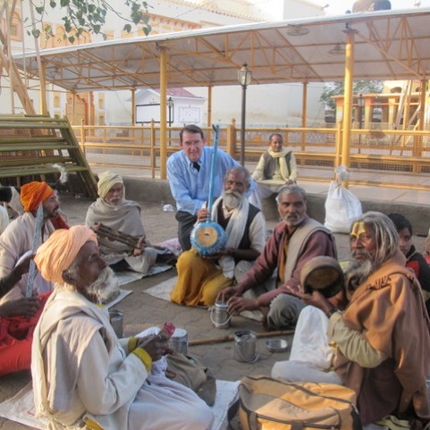 Touring India, he encountered a banjo variant (above center) in a street band performing near a railway station.