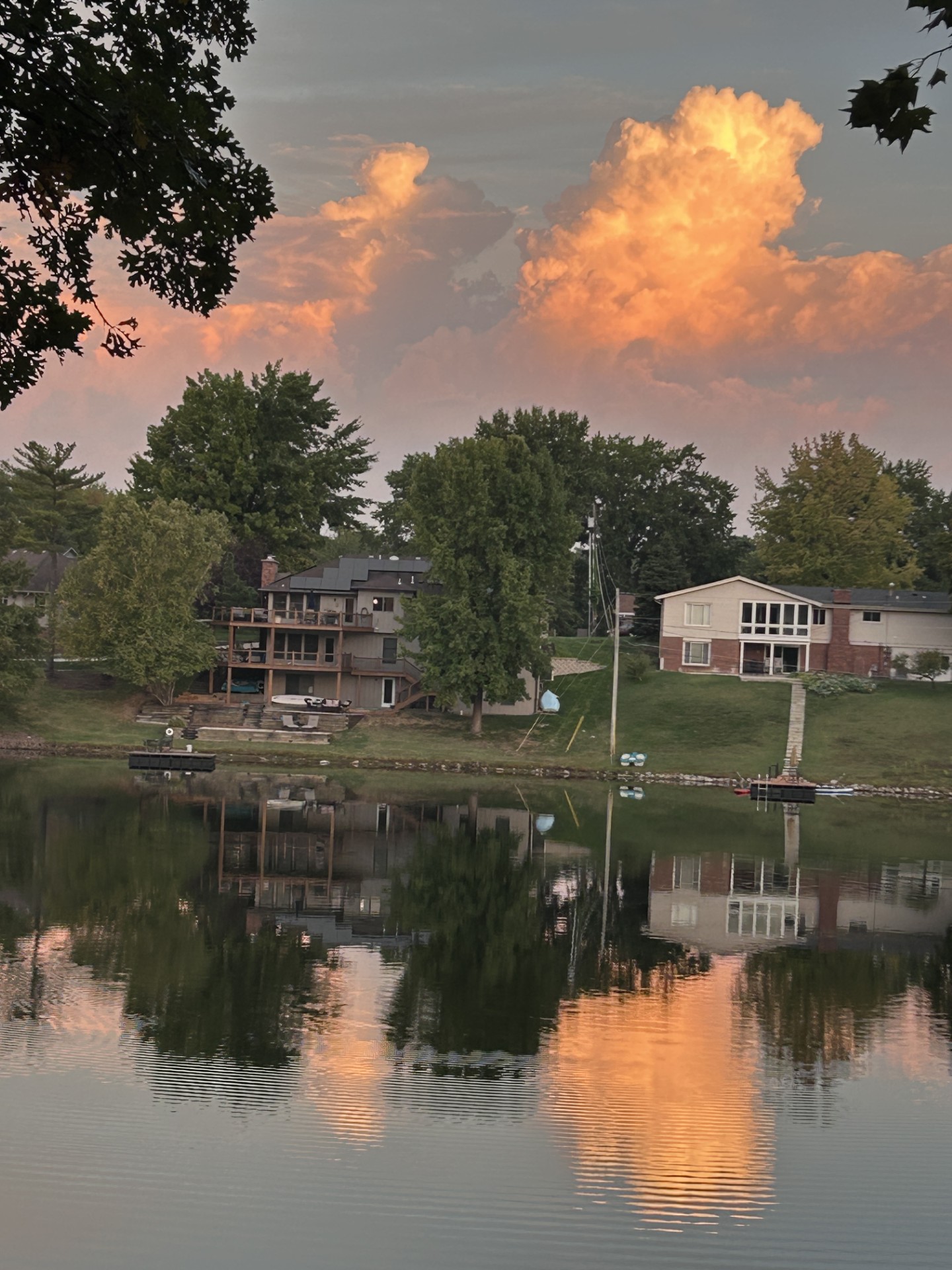 A few weeks ago at daybreak, our neighbor across the lake photographed some sun-splashed cumulonimbus clouds that towered over the BRC domicile.