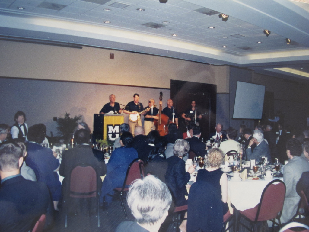 Some archival gig photos from the 1990`s were recently rediscovered in the BRC files, and one onstage snapshot includes a cherished gold-plated Stelling banjo. The instrument (seen below center) was a long awaited self-indulgent treat that the 5-string picker had acquired to celebrate a 50 year birthday milestone.