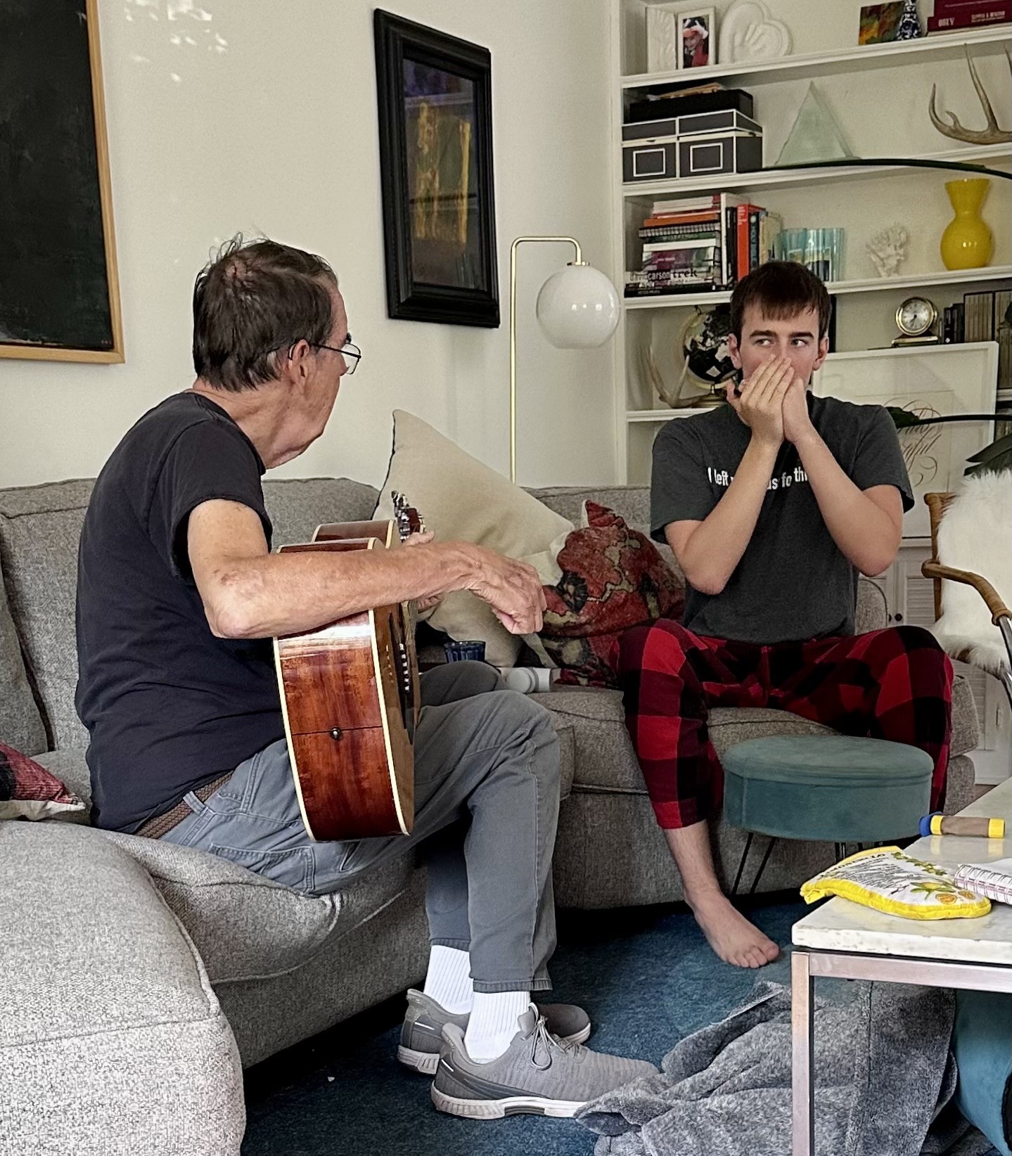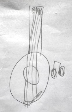 Soon thereafter, one of our guitarists was gifted an impressionistic rendering (ala Picasso…?) of his instrument pouring-out music.