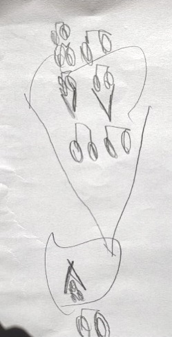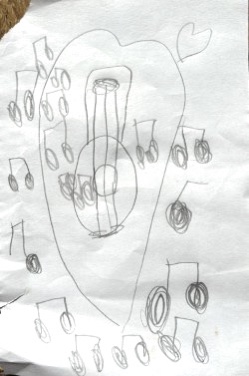 Last Sunday, a young listener about age 5 years old spent her lunch hour industriously sketching the band. Periodically, after completing a few drawings, she would step-up onto the bandstand and distribute her works to the musicians. Over the time frame of her family meal, each band member was gifted two sketches. These playful images surprisingly reflected our music and fellowship.